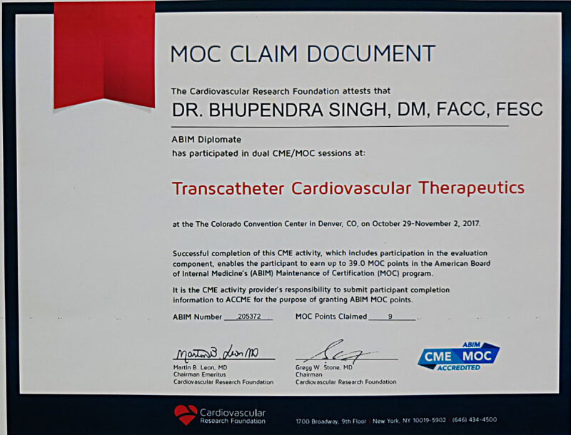 Dr Singh graduated and post graduated with certificate of honour from the prestigious King George Medical College (KGMC) Lucknow .He was awarded Gold Medal for his M.D. He received his D.M.(Cardiology) training from the KGMC Lucknow.
